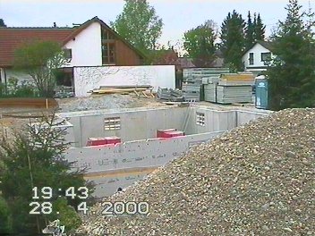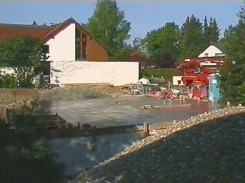 Nachdem eine Woche nichts passiert plötzlich die Hektik, das Haus soll geliefert werden und dazu muß verfüllt sein und der Keller braucht die richtige Größe. Aber statt Vollgas Schneckentempo. 5 vor 12 doch fertig, aber der Beton noch feucht und die mühsam erbaute Mauer wieder eingefallen (zumindest teilweise). Aber das Haus steht ja nicht drauf, Gott sei dank.