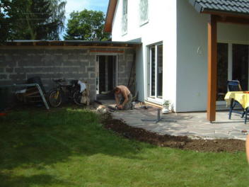 Das Holz wird bestellt, eine Woche, kein Problem. Der Stahlträger wird bestellt. LKW mit Kran, kein Problem. Die Steine, kein Problem. Das einzige was wirklich kein Problem ist sind die Steine.