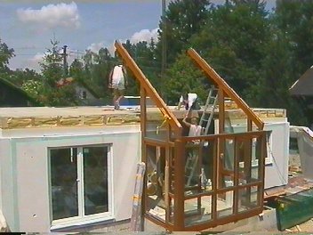 Zwei Tage später ist dann das Dach gedeckt und auch innen schauts schon relativ fortgeschritten aus, Elektrik und Heizung sind fertig. Alles sehr erfreulich, auch weil die Arbeiten sehr ordentlich ausgeführt wurden.